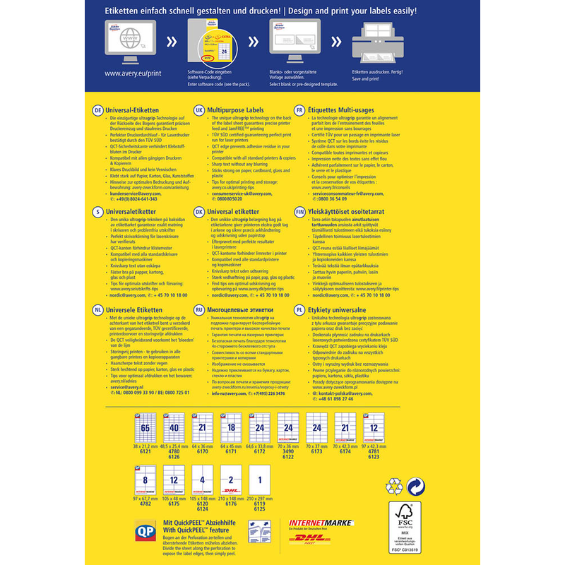 | Etiketten pro Blatt | 24 Etiketten |