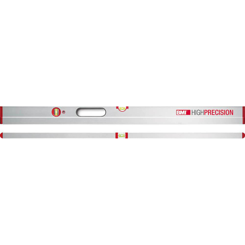 | Besonderheiten | die Libellenblasen machen bei gleicher Schräglage einen 5x weiteren Weg als die gewöhnlicher Wasserwaagen, Ungenauigkeiten werden dadurch schneller sichtbar, BMI Rundlibelle für spiegelfreie Sicht, Einbaugenauigkeit der Libellen 0,3 mm/m in Normallage, BMI 4-Kammer-Profil, das widerstandsfähigste Profil im Markt, wirksamer zusätzlicher Schutz durch stoßdämpfende Gummi-Endkappen |