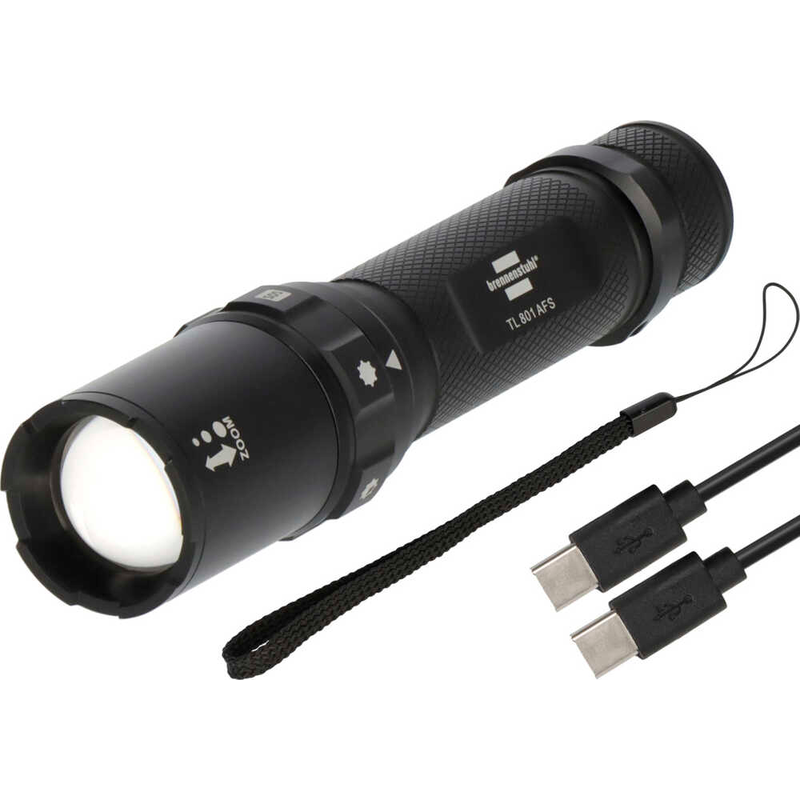 Wenn Sie sich für die brennenstuhl Taschenlampe TL 801 AFS entscheiden, erhalten Sie die Lieferung inklusive USB C Kabel, Armschlaufe.