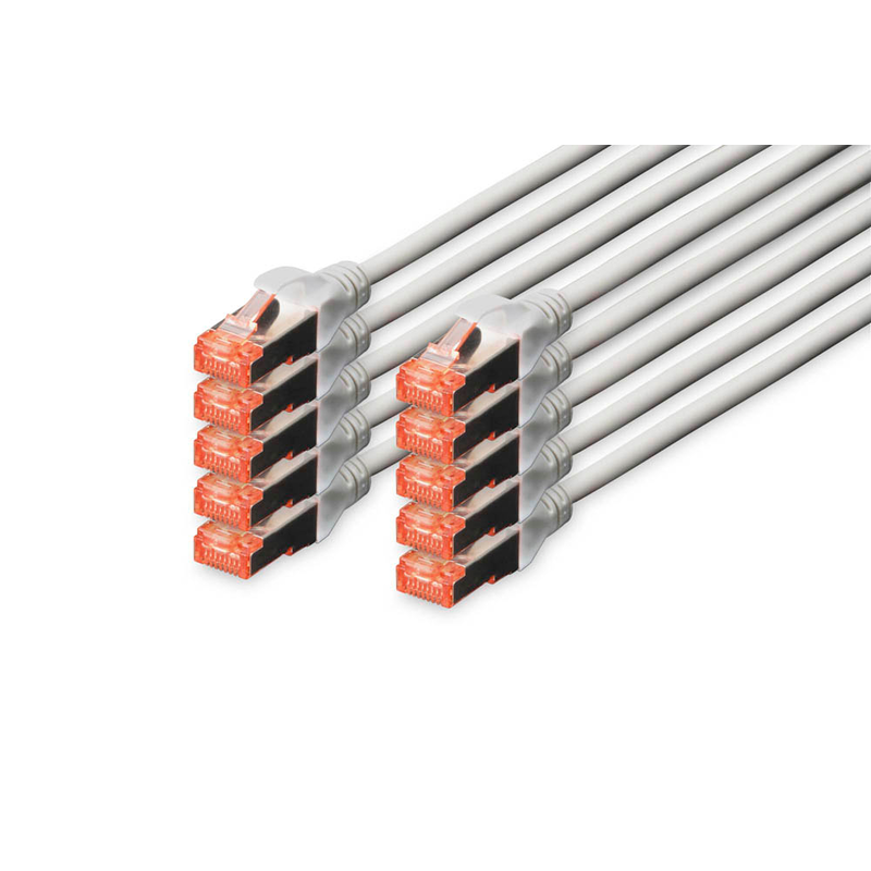 Verbinden Sie mit den DIGITUS RJ45-Stecker/RJ-45 Stecker Netzwerkkabeln DK-1644-050-10 5,0 m grau, 10 St. Geräte mit LAN-Anschluss miteinander bzw. mit einem Router. So schaffen Sie ganz leicht zuverlässige Netzwerke.