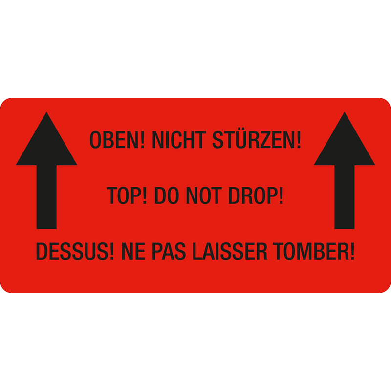 Artikelbild für EICHNER Warnetiketten rot »Oben! Nicht stürzen!« 100,0 x 50,0 mm, 250 Etiketten , Artikelnummer 486677