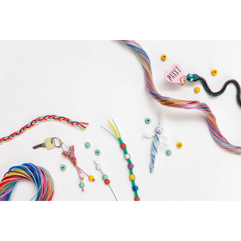 Besonderheiten Zum Gestalten individueller Scoubidous. Komplett-Set inkl. Zubehör und einfacher Bastelanleitung.