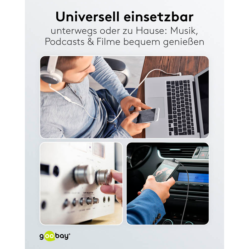 Wollen Sie zum Beispiel den Ton von Ihrem Smartphone oder Fernseher auf einem anderen Gerät hören, dann ist das goobay 3,5 mm Klinke Klinkenkabel 1,0 m silber, schwarz, 1 St. genau das Richtige für Sie.