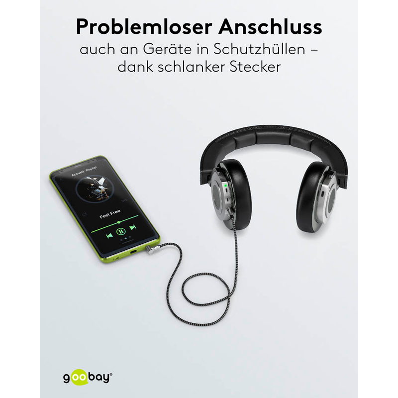 Das goobay Klinkenkabel ist dank 3,5 mm Klinkenstecker und 3,5-mm-Klinkenstecker für jedes Gerät mit Klinken-Anschluss zur Audioübertragung geeignet. Zur Audioübertragung ist der 3,5 mm Klinkenstecker ein gängiges Zubehör. Er kommt bevorzugt zum Einsatz, wenn es darum geht, Kopfhörer, Mikrofone oder Lautsprecher anzuschließen. Seit 1877 gibt es diese traditionsreiche Steckverbindung bereits. Durch die Schirmung können Sie mit einer Reduzierung von Störeinflüssen rechnen.