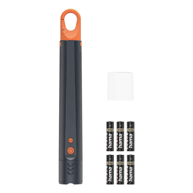 Wenn Sie die hama Taschenlampe FLX1000 bestellen, erhalten Sie die Lieferung inklusive 6x AAA Micro Batterien, 1x Diffusoraufsatz, 1x Haken.