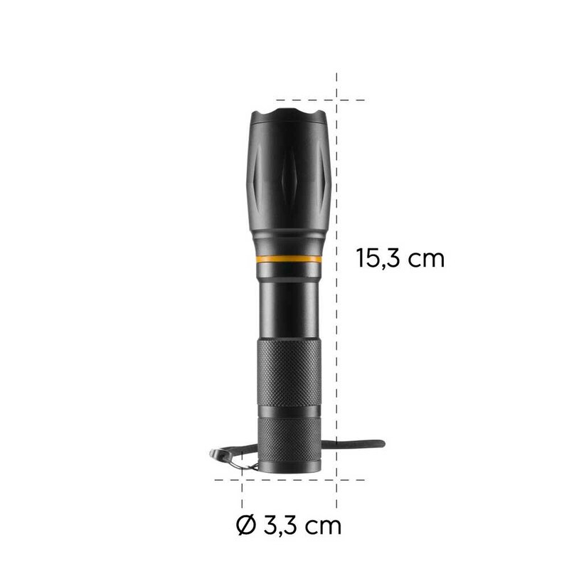 Die hama Taschenlampe W200 kann mit verschiedenen Leistungsstufen betrieben werden. Beim Einsatz können Sie zusätzlich von diesen Funktionen profitieren: 3 Leuchtstufen: eine weiße LED mit hellem Licht, gedimmtes Licht und Blinklicht, Zoom-Funktion (verstellbarer Lichtkegel von Nah- und Fernbereich), zusätzlich aktivierbare COB-LED.