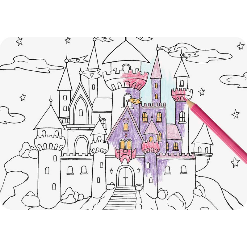 Das Set enthält ein stabiles Karton-Gehäuse sowie verschiedene vorgestanzte Motivkarten zum Ausmalen. Nach dem kreativen Bemalen lassen sich die Teile unkompliziert zusammenstecken und mit der beiliegenden Schnur ergänzen. So entsteht eine bezaubernde Princess-Szenerie, die Kinder zum Rollenspiel und Erzählen eigener Geschichten anregt.