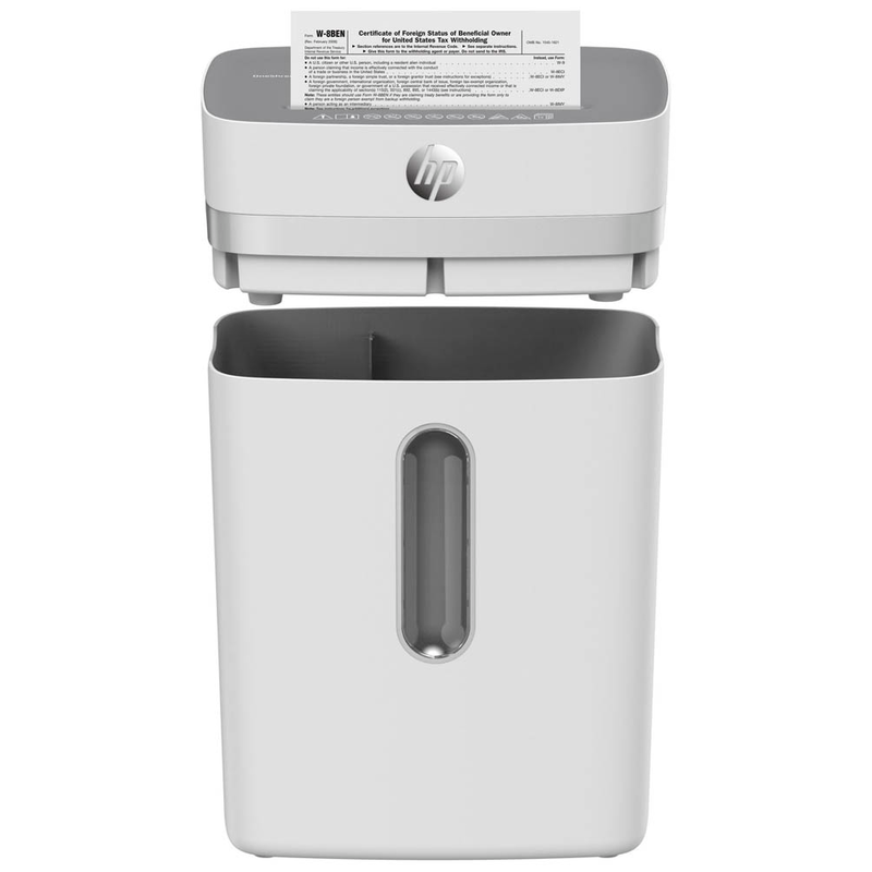 HP OneShred 12CC Aktenvernichter mit Partikelschnitt P-4, 4 x 35 mm, bis 12 Blatt, weiß