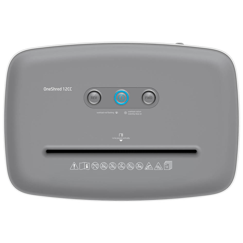 Der HP Aktenvernichter mit Partikelschnitt OneShred 12CC schreddert Dokumente und Kreditkarten im Handumdrehen