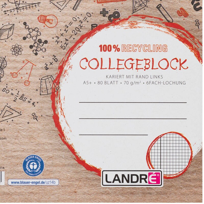 Mit dem LANDRÉ® Collegeblock Recycling Kleinformat werden Sie den Anforderungen der modernen Arbeitswelt gerecht. Er besticht durch ein praktisches und cleveres Design und lässt sich überall für Notizen und andere Mitschriebe zum Einsatz bringen. Mit dem schicken Schulmotiv auf dem Deckblatt macht der LANDRÉ® Collegeblock Recycling Kleinformat auch äußerlich eine gute Figur.