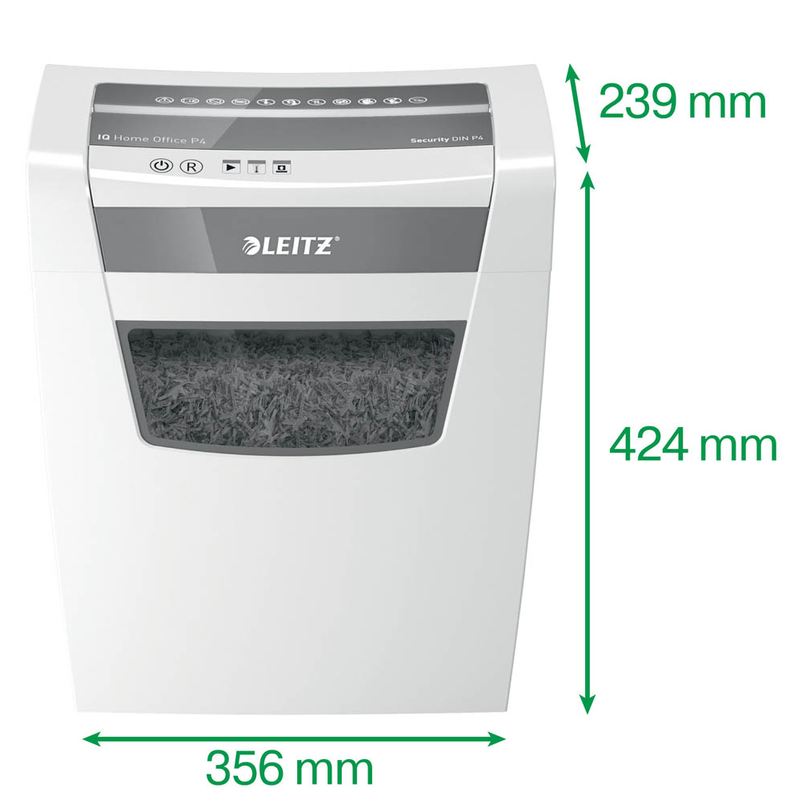 Artikelbild für AKTION: LEITZ IQ Home Office Aktenvernichter mit Partikelschnitt P-4, 4 x 28 mm, bis 10 Blatt, weiß, Artikelnummer 818118