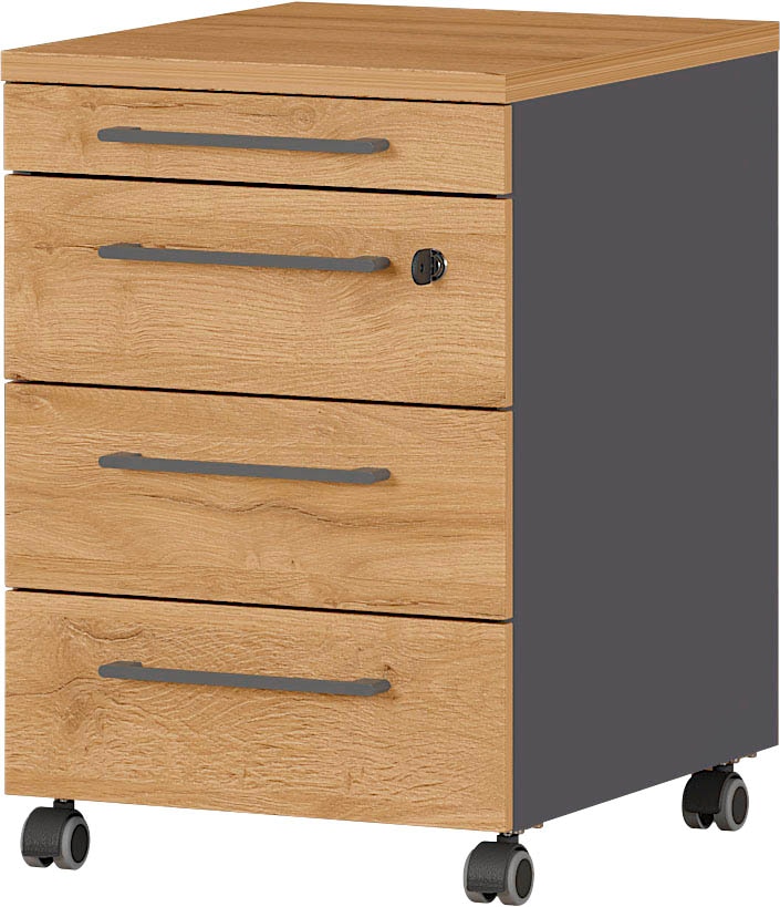 GERMANIA Agenda Home Rollcontainer grafit, grandson-eiche 4 Auszüge 42,0 x 49,0 x 61,0 cm
