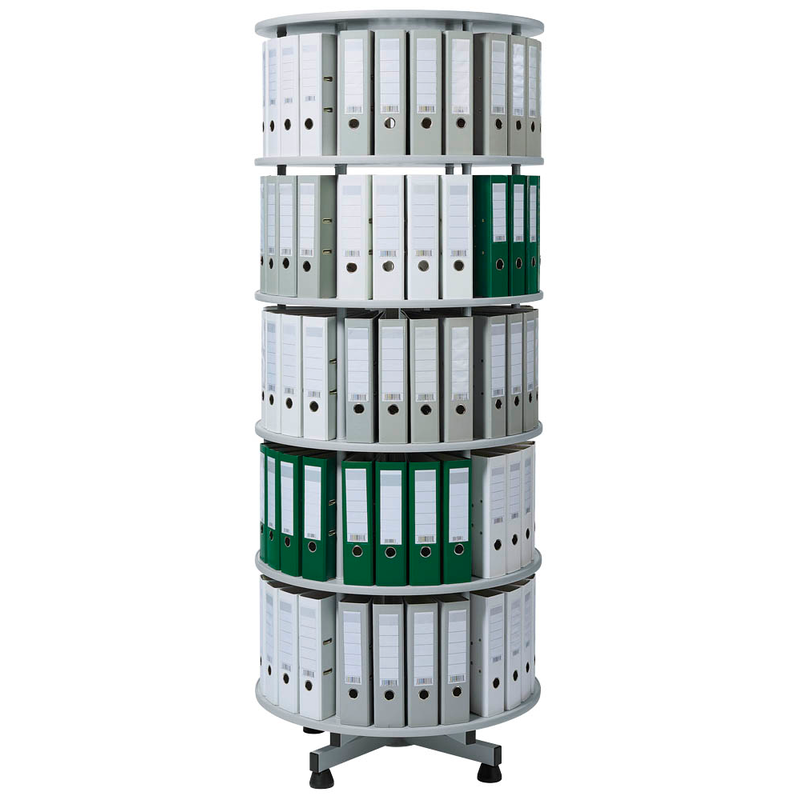Die Ordnerdrehsäule hellgrau bis zu 120 Ordner, Komplett drehbar, H: 203,0 cm: maximale Ordnung, minimale Fläche