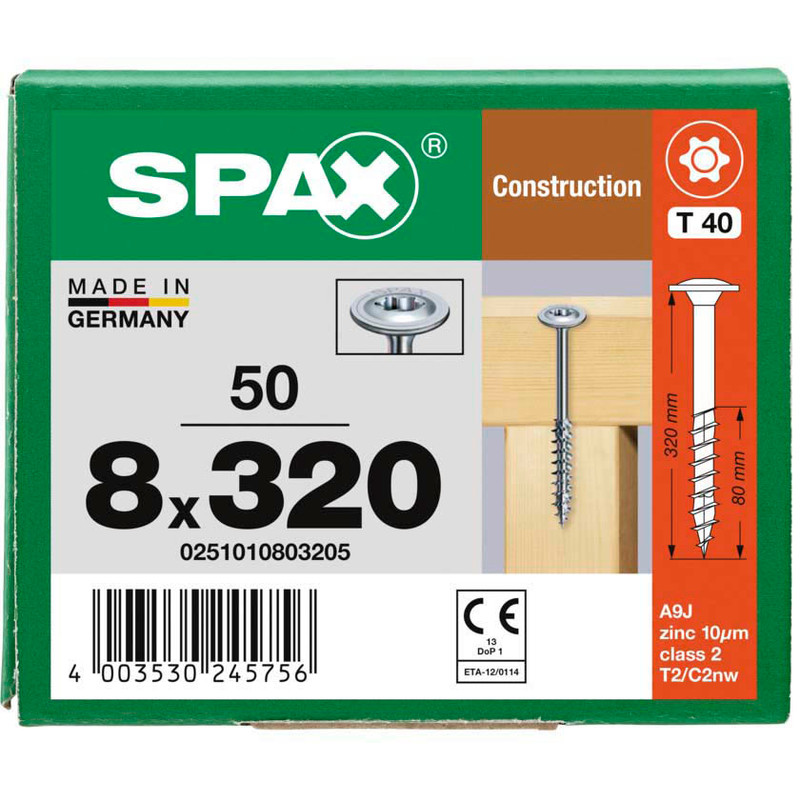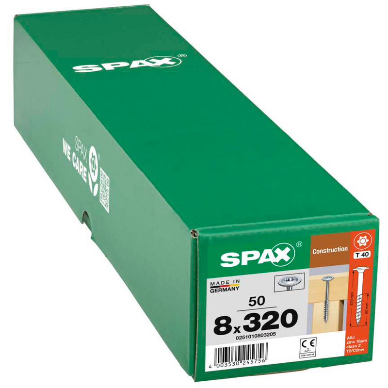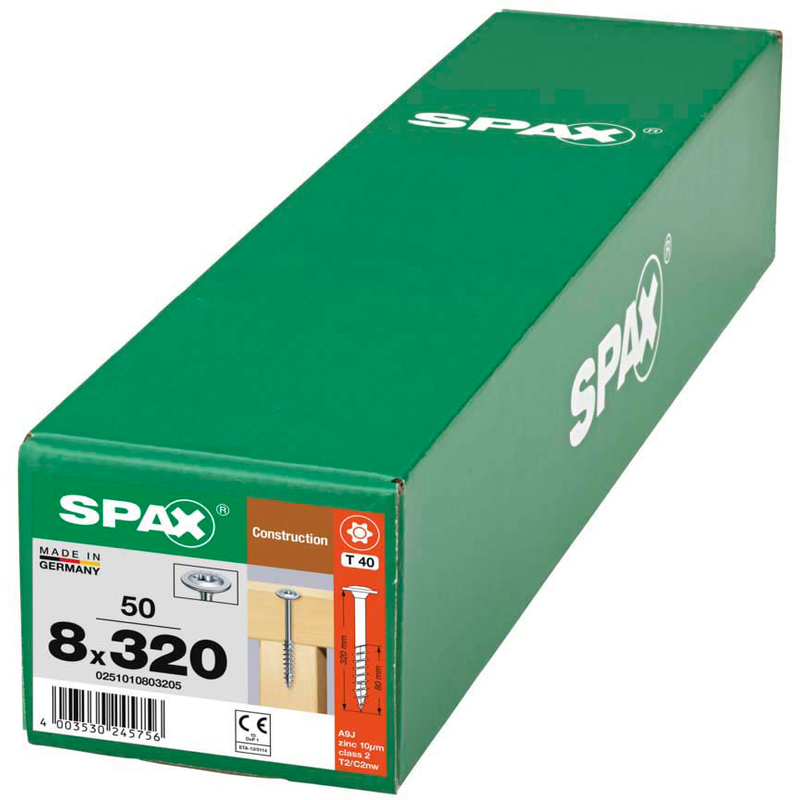 Dank spezieller Gewindeformen halten die SPAX® Holzbauschrauben T40 Tellerkopf WIROX 0251010803205 8 mm x 320 mm, 50 St. auch bei hohen Lasten zuverlässig. Sie sind für dauerhafte Befestigungen gemacht und sparen Ihnen durch einfache Verarbeitung viel Zeit. Damit bleiben Sie flexibel bei der Umsetzung Ihrer Ideen.