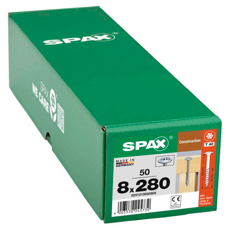 Dieses "Made in Germany"-Produkt zeugt von hohem Qualitätsstandard. Bestellen Sie noch heute und bereichern Sie Ihre Werkzeugausstattung um die SPAX® Holzbauschrauben T40 Tellerkopf WIROX 0251010802805 8 mm x 280 mm, 50 St.!