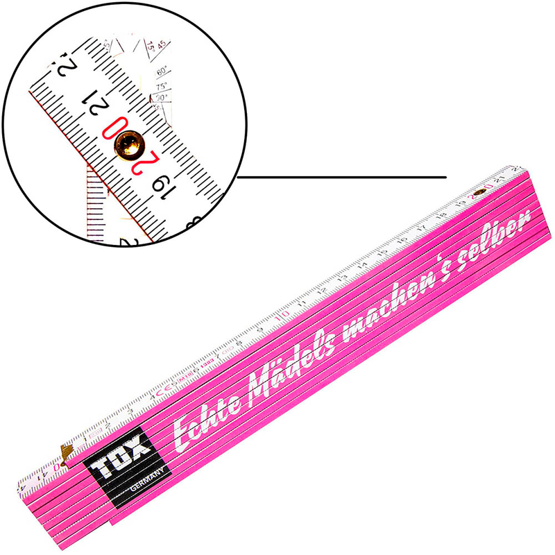 Der TOX Meterstab Echte Mädels machens selber Holz 200,0 cm bietet genaue Messungen und eine attraktive Farbgestaltung in rosa mit coole Spruch.