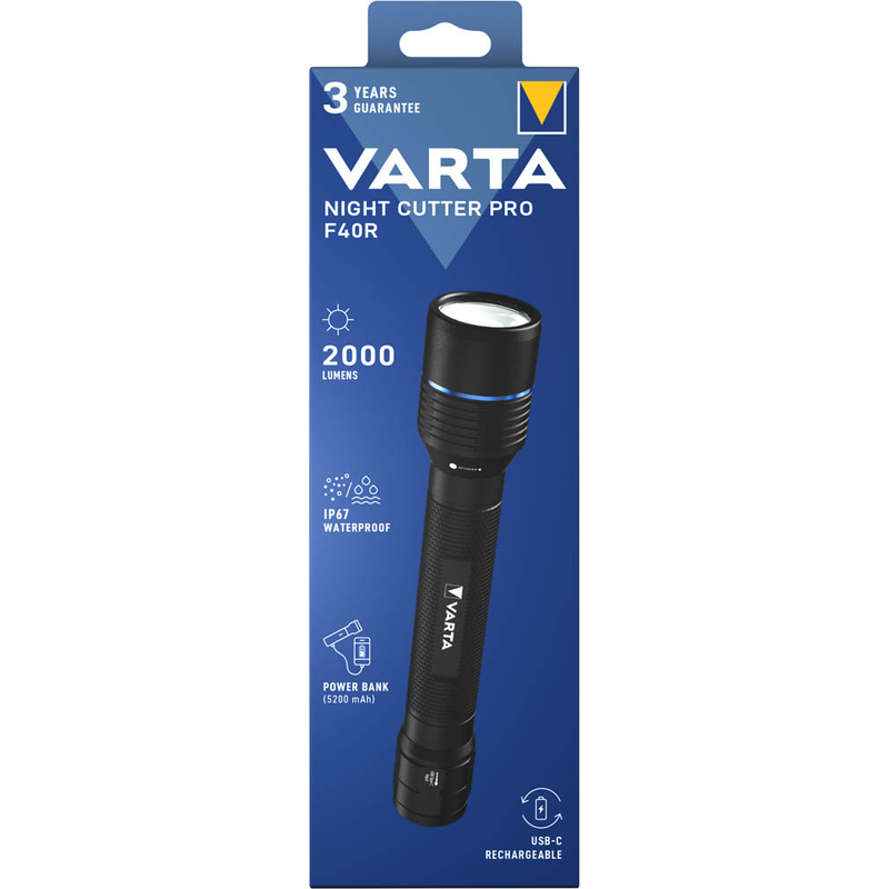 Die VARTA Taschenlampe Night Cutter Pro F40R besitzt unter anderem folgende praktischen Eigenschaften: Leistungsstufen schaltbar und USB-Aufladung. Sehr komfortabel ist die Nutzung auch dank dieser Funktionen: